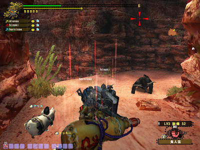 注意することは、重なって超速射をすること。広がって超速射をするとラージャンがあっちに行ったり、こっちに行ったり、はたまた勢い余って崖下に飛び降りてきて、心臓によろしくないです(・ω・`;)