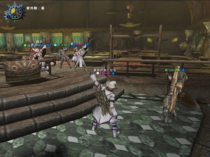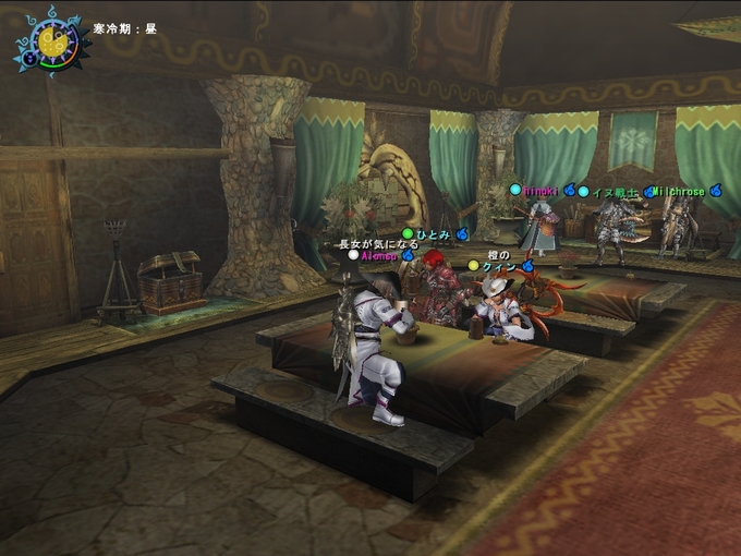 みんなで集まって、ワイワイと猟団部屋の機能を説明していました。