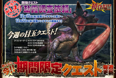 明日からの期間限定クエストで配信される「劫霞調査依頼」の剛種オオナズチで「古龍種の上翼」「古龍種の剛翼」が入手できるようですね。