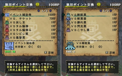 1回最大2000RPまで寄付が出来て、猟団長はそのRPをいろいろなアイテムに交換できます。