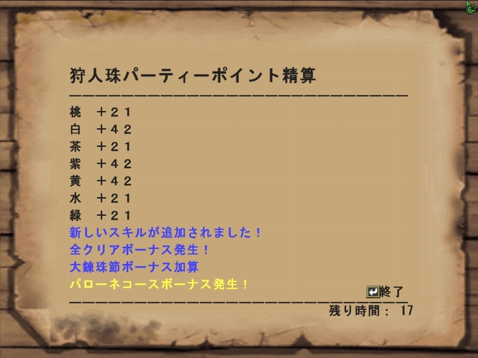 例えば、その日が大報酬節でアシエルの薬を使用して、大練珠節に変更してクエストを貼ると集まったPTも大練珠節のボーナスが得られます。