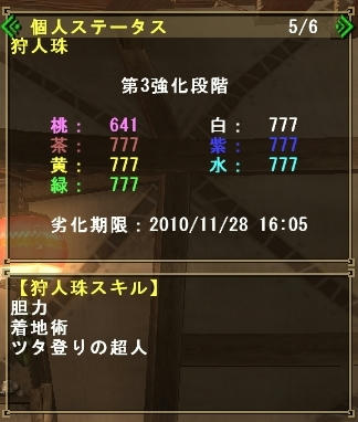 ・狩人珠強化、色変更に必要なCPが半分になる。