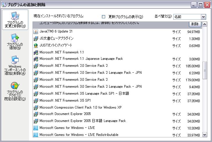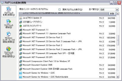 スタートメニューのコントロールパネルから「プログラムの追加と削除」を選択して確認してみてください。